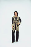 Exude regal elegance and modern sophistication with this stunning black open-style jacket outfit. Crafted from luxurious pure khaddi net, the jacket is richly adorned with heavy embellishments of sequins, beads, and intricate embroidery across the front and sleeves, creating a glamorous and timeless statement.